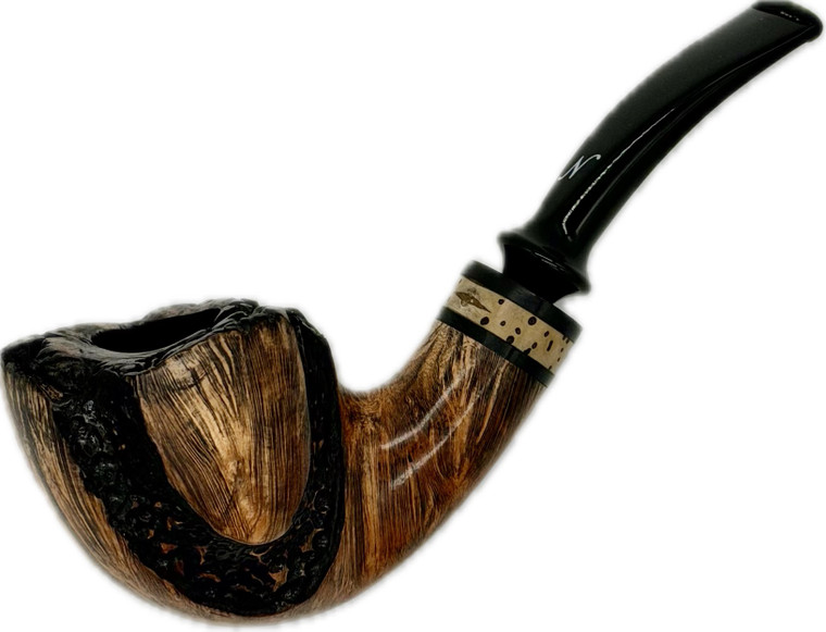 The difference between ordinary and Extraordinary is that little Extra.... Nature creates some of the most magnificent and amazing patterns which has inspired us for this line of pipes. As a result the rings have been made of Natural materials like Bamboo, Palm, large nuts and seeds from tropical plants. For the finish of the briarwood we use a large spectrum of colors from matte to more glossy surface. We wanted a strong contrast between the accent and the briarwood.